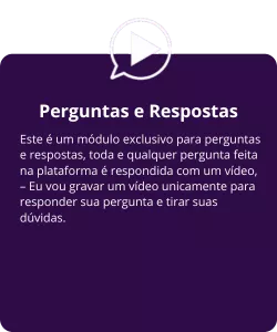 Toda dúvida e comentário deixado na plataforma será respondido em vídeo, para que você não fique com nenhuma dúvida!
